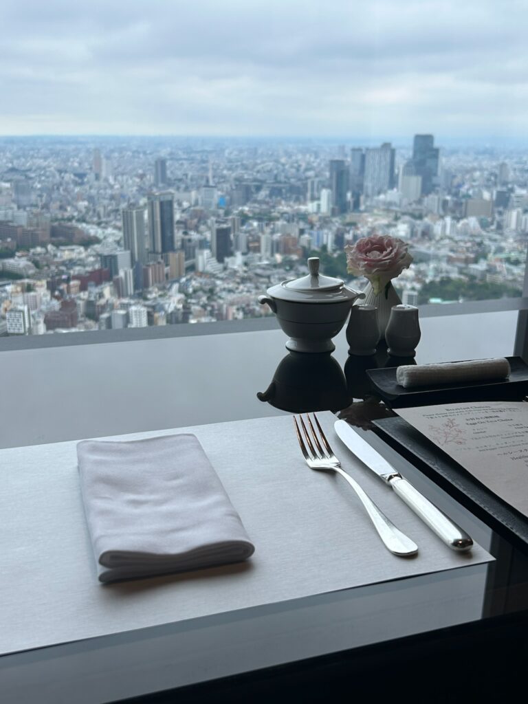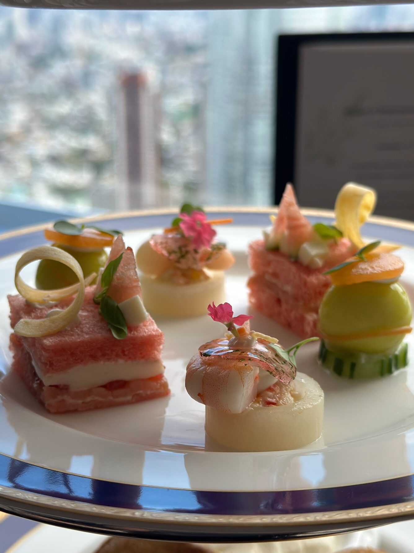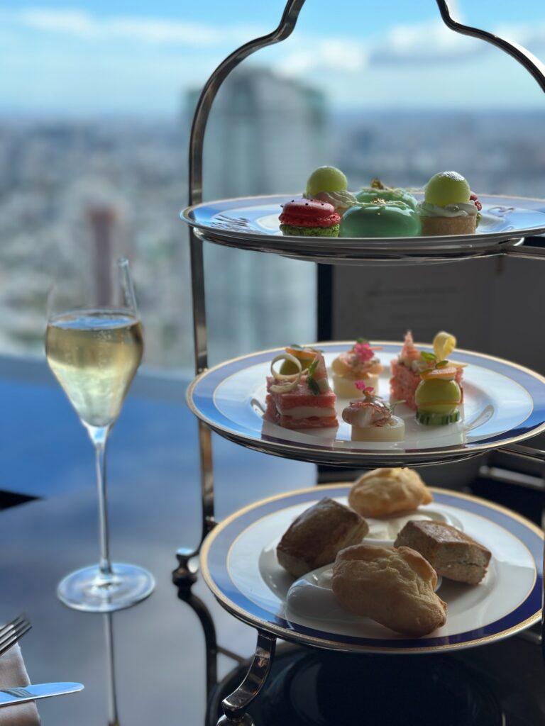 2025年7月現在、こちらのラウンジは東京都で1番高層階にあるラウンジです。そこから眺める景色とティースタンドは圧巻です。