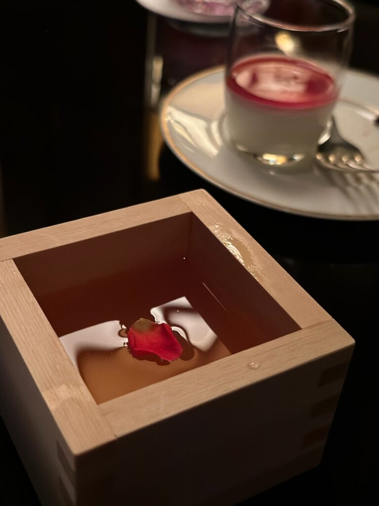 升に入っていて、花びらが浮かんでいて見た目が可愛いです。気分も血中アルコール濃度も上がります。