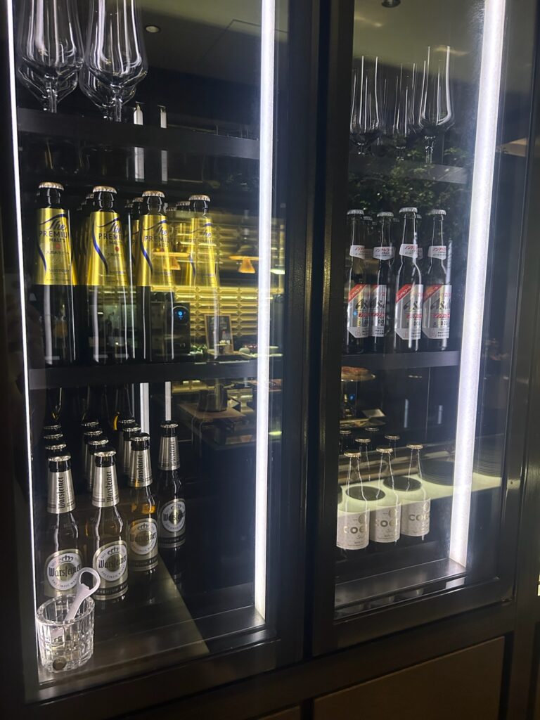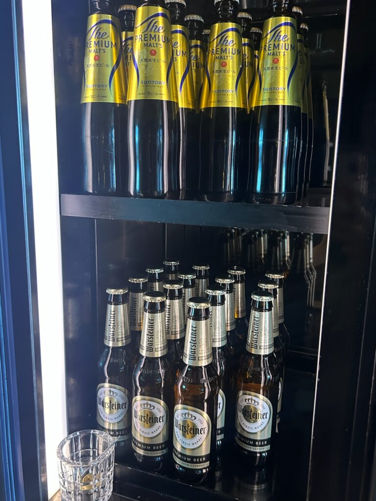 ビールはプレミアムモルツやドイツビール、ノンアルコールビールはアサヒ、クラフトビールのCOEDOもあります。炭酸水、お水などもありました。