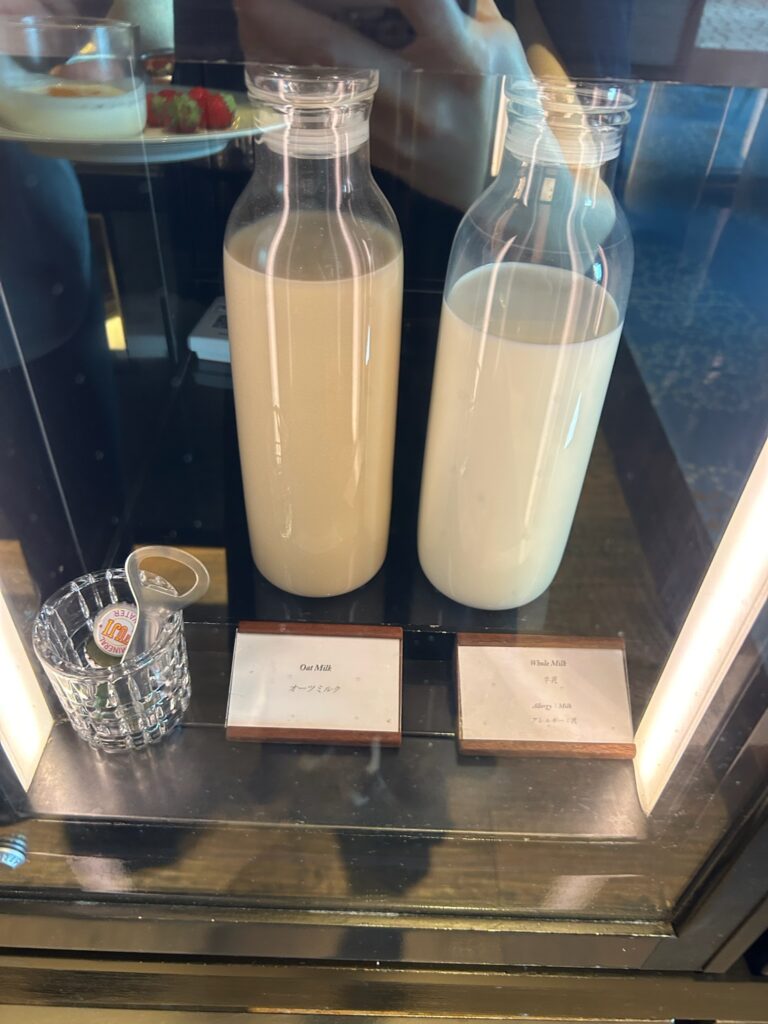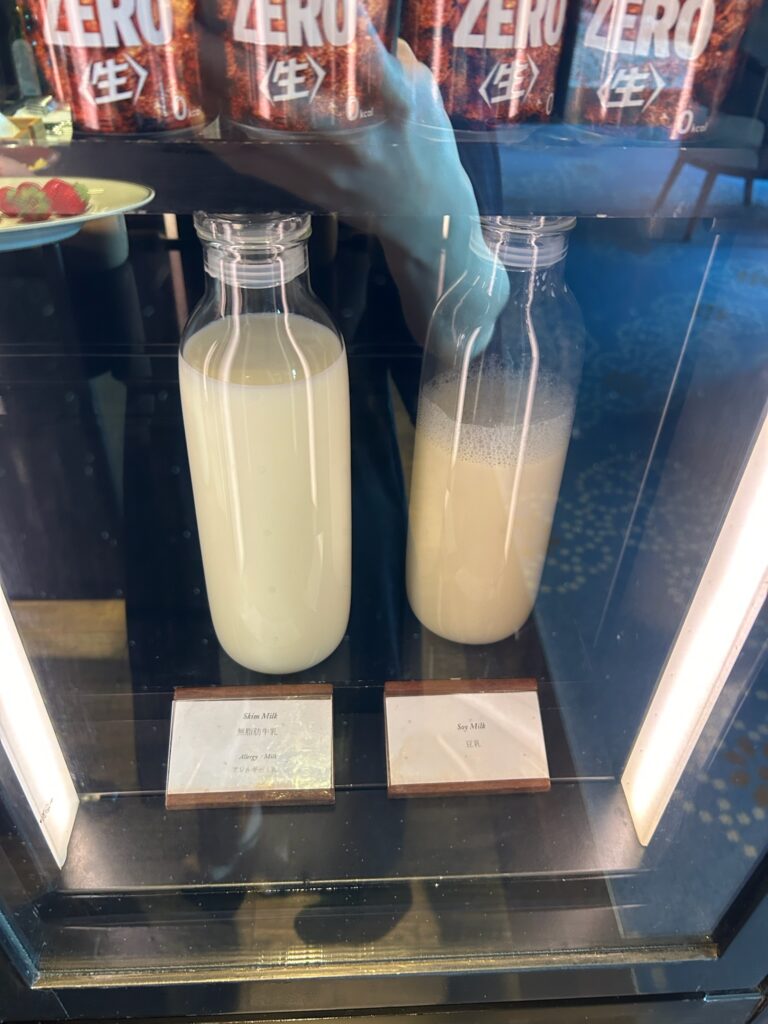 牛乳だけではなく、無脂肪乳や豆乳、オーツミルクもありました。