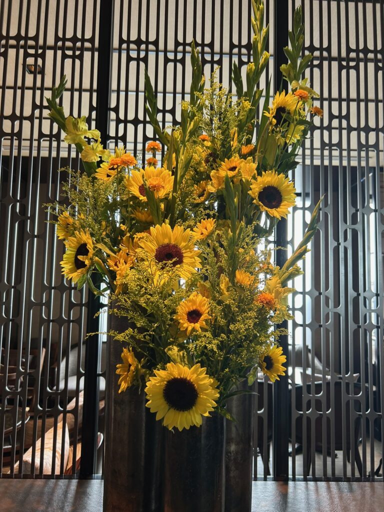 クラブラウンジ入口のお花がバラからひまわりに変わっていてとても素敵です。